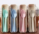 طقم الشوكة والملعقة والشوب ستيك من قش القمح الصحي